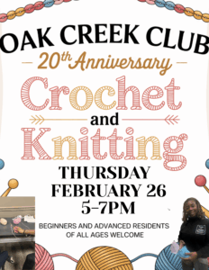 Grab those hooks and yarn and join us at The Swim and Tennis Center on Thursday, February 26th from 5pm-7pm.