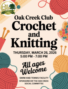 Grab those hooks and yarn and join us at The Swim and Tennis Center on Thursday, March 26th from 5pm-7pm.